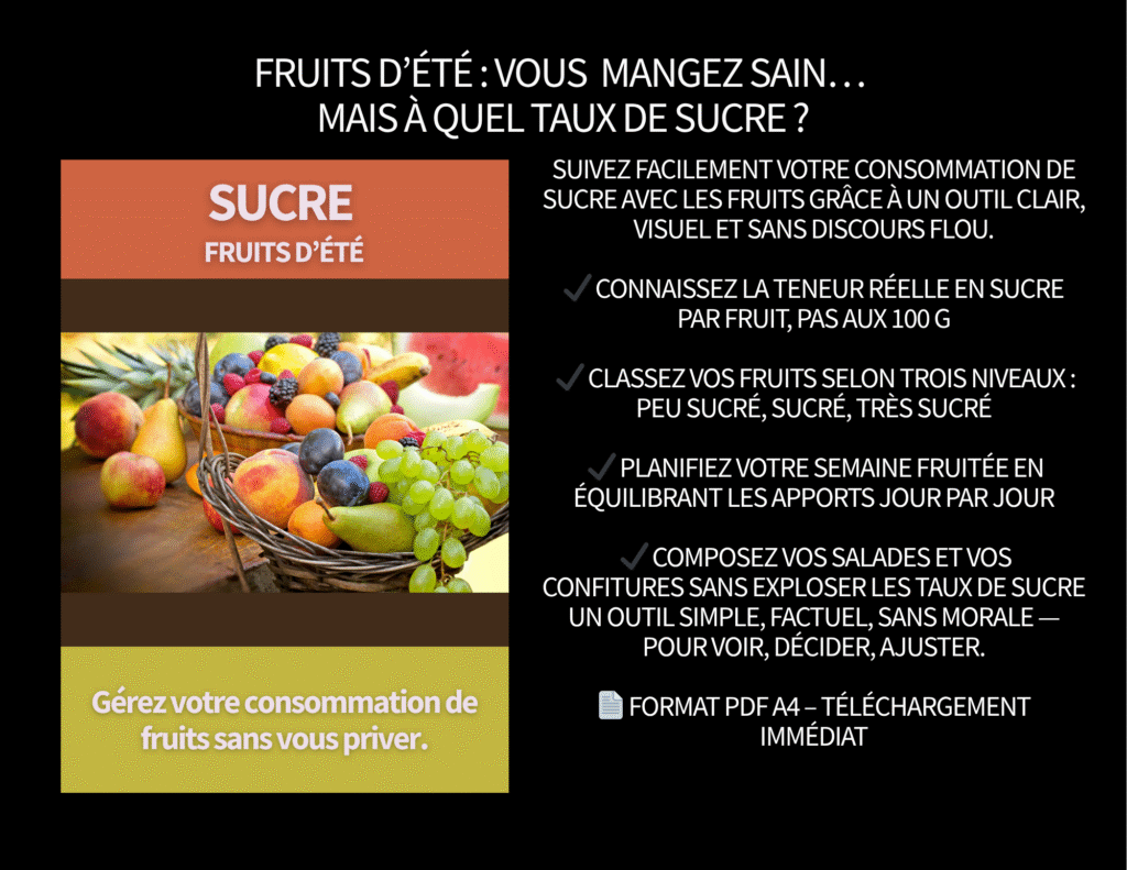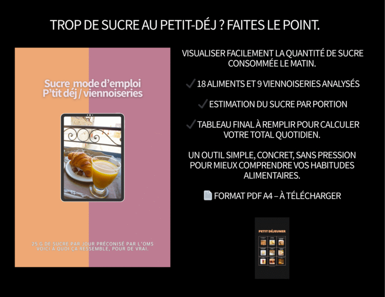 Apprenez à repérer le sucre dans votre alimentation quotidienne et à en réduire la consommation sans régime, sans frustration. Grâce à des outils simples, visuels et pratiques, vous reprenez le contrôle en douceur pour retrouver un meilleur équilibre.